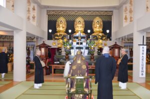 今年で14年となる3月11日に山内にて慰霊供養を厳修しました。地震発生の午後2時46分に黙とうを捧げ、犠牲者のご冥福をお祈り致しました。