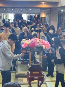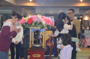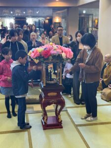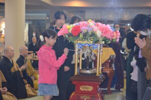 続いて参詣された方は、誕生仏にあま茶をかけてお祝いを致しました。