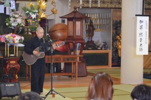 そして最後に浜頓別町永生寺副住職でシンガーソングライターの加藤煕章さんにより花まつりライブを行いました。
